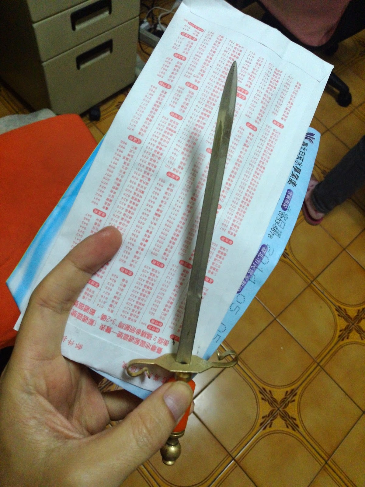 前兩個月高雄要搬家,家人通知我回家整理物品,偶然之間發現了這幾支拆信刀,想起這一段往事。整理了一下,把最常用的這把和另一把最漂亮的拆信刀,一起帶上台北來。